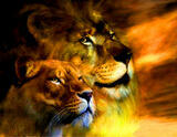 Алмазная вышивка «Лев и львица смотрят вдаль» 30x40 см